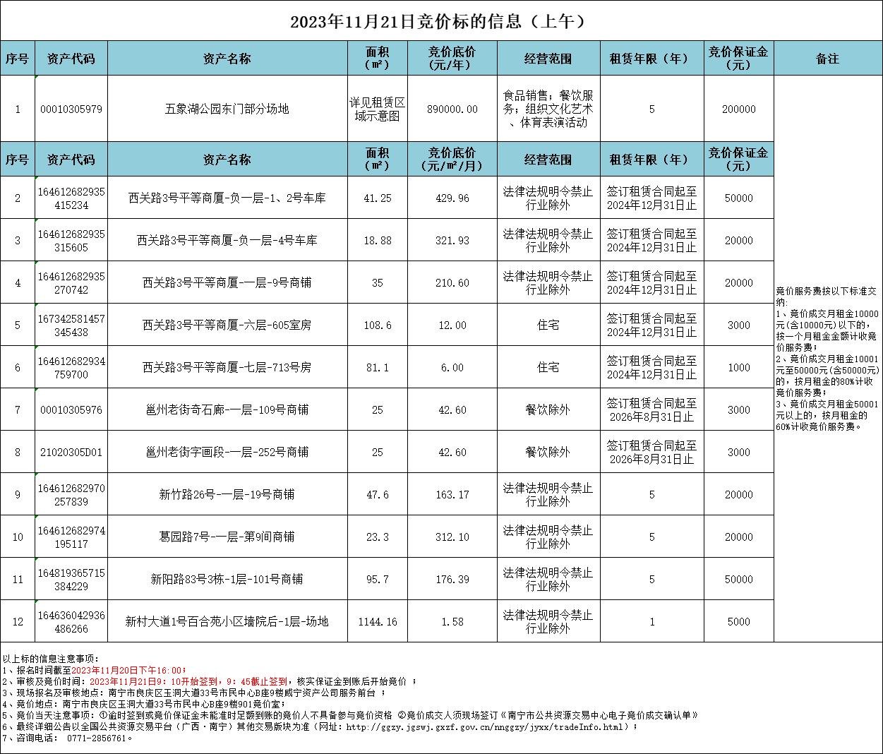 2023年11月21日競價(jià)標(biāo)的信息