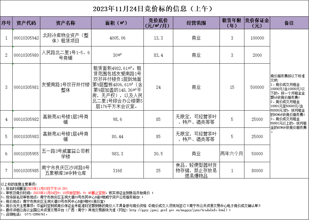 2023年11月24日競價(jià)標(biāo)的信息