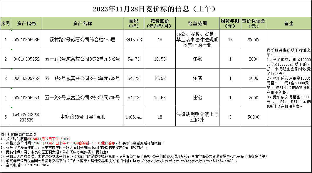 2023年11月28日競價標的信息