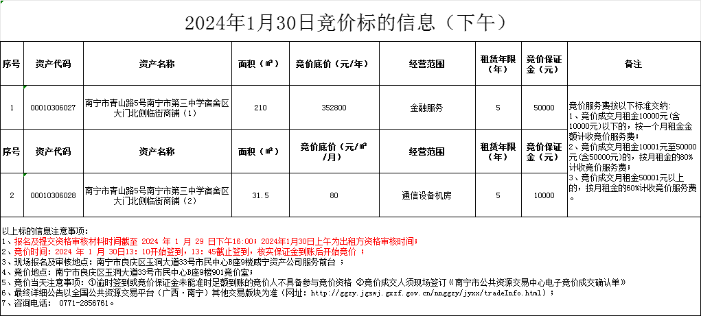 2024年1月30日競價標的信息