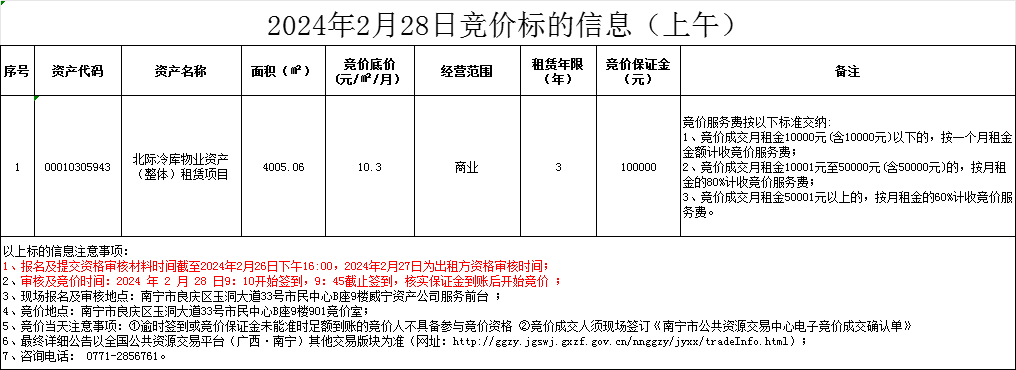 2024年2月28日競價標的信息