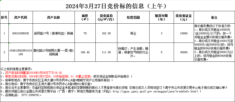 2024年3月27日競價標的信息(現場競價)