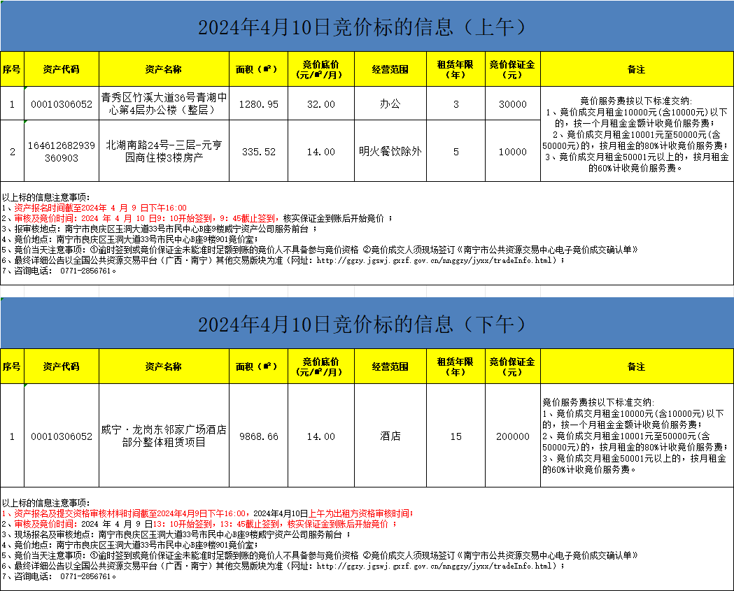 2024年4月10日競價標的信息(現場競價)