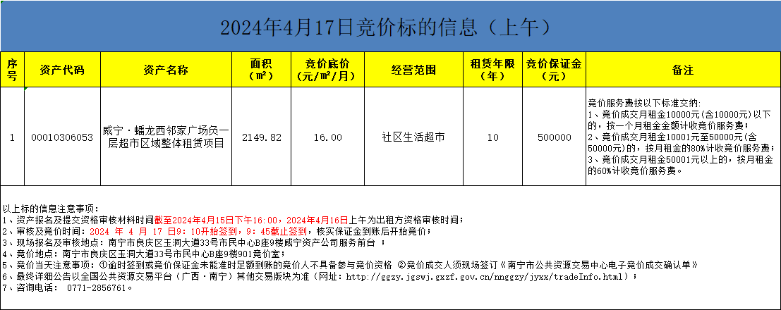 2024年4月17日競(jìng)價(jià)標(biāo)的信息(現(xiàn)場(chǎng)競(jìng)價(jià))