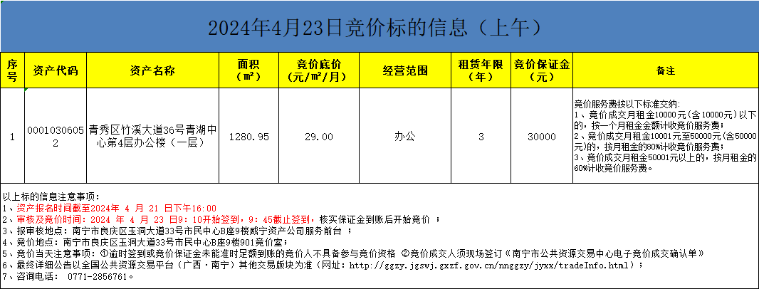 2024年4月23日競(jìng)價(jià)標(biāo)的信息(現(xiàn)場(chǎng)競(jìng)價(jià))