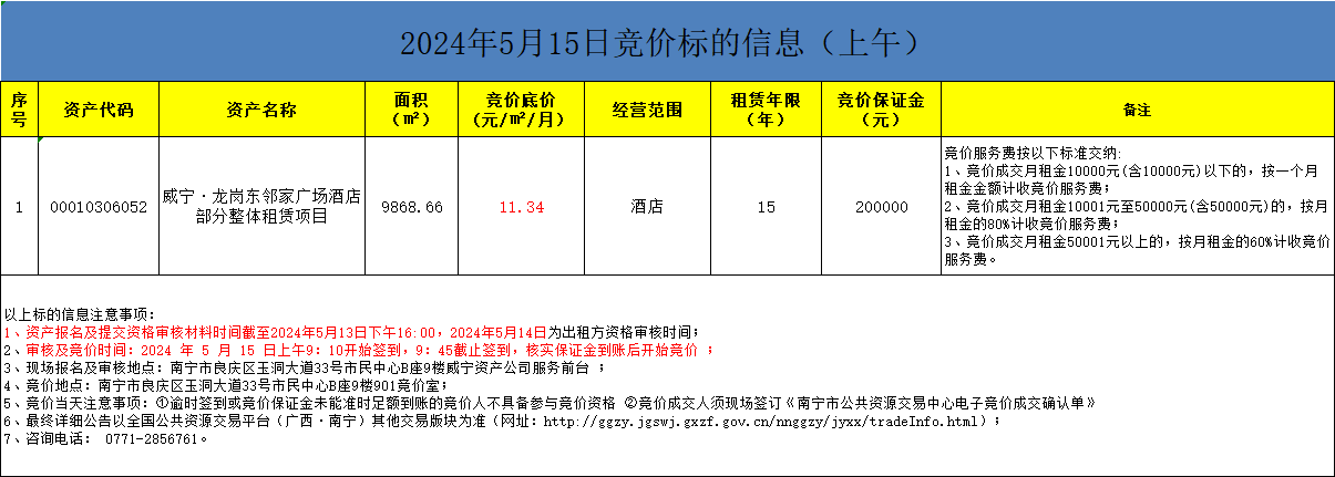 2024年5月15日競價標的信息(現場競價)