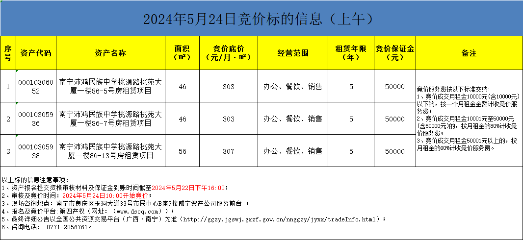 2024年5月24日競價標的信息(線上競價)