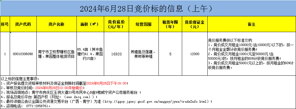 2024年6月28日競價標(biāo)的信息(線上競價)