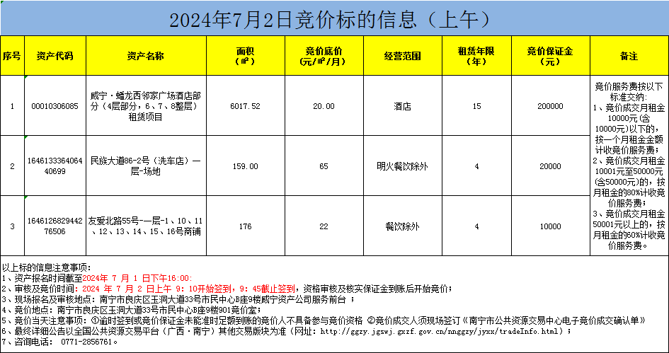 2024年7月2日競價標的信息(現(xiàn)場競價)