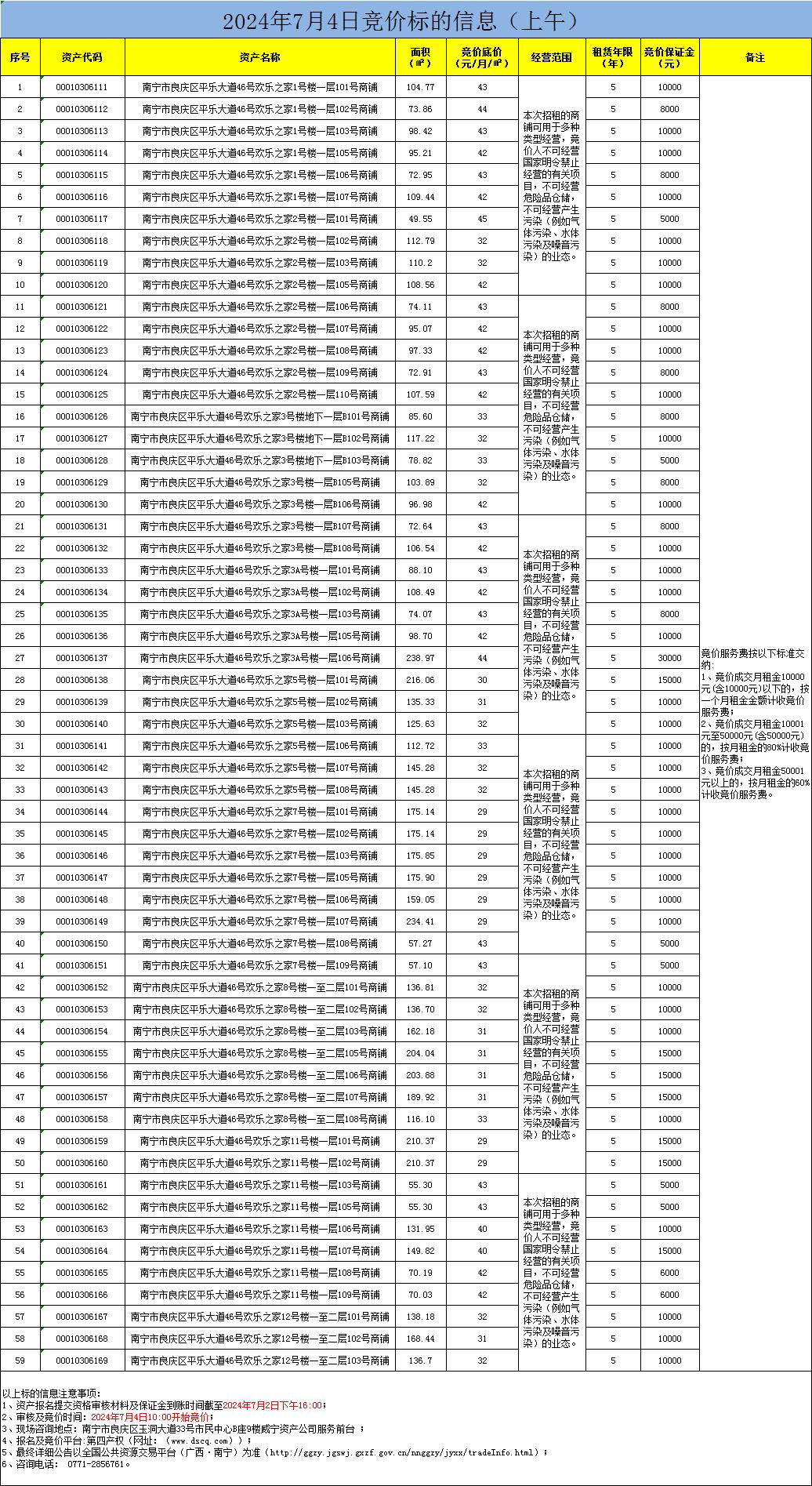 2024年7月4日競價標的信息(線上競價)