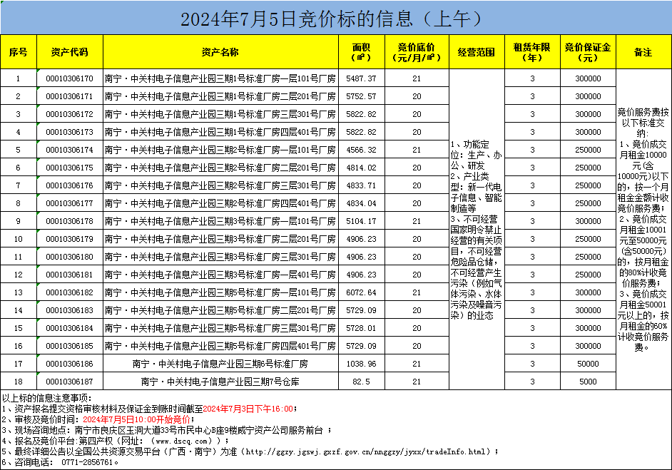 2024年7月5日競(jìng)價(jià)標(biāo)的信息(線上競(jìng)價(jià))