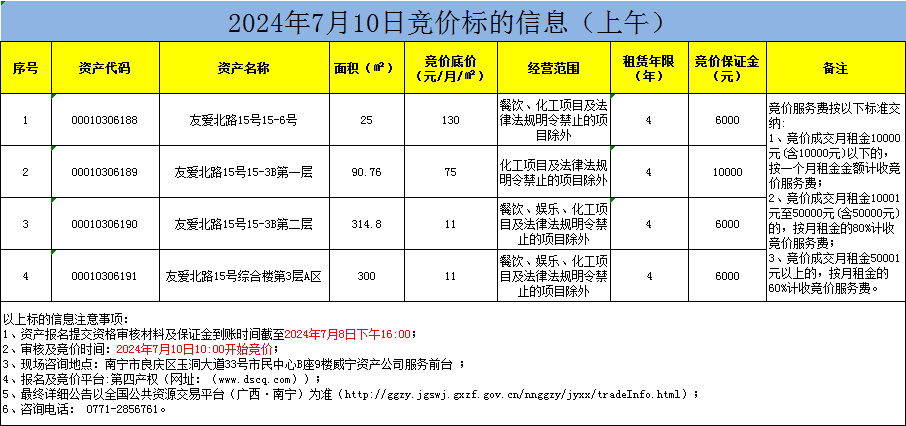 2024年7月10日競價標的信息(線上競價)