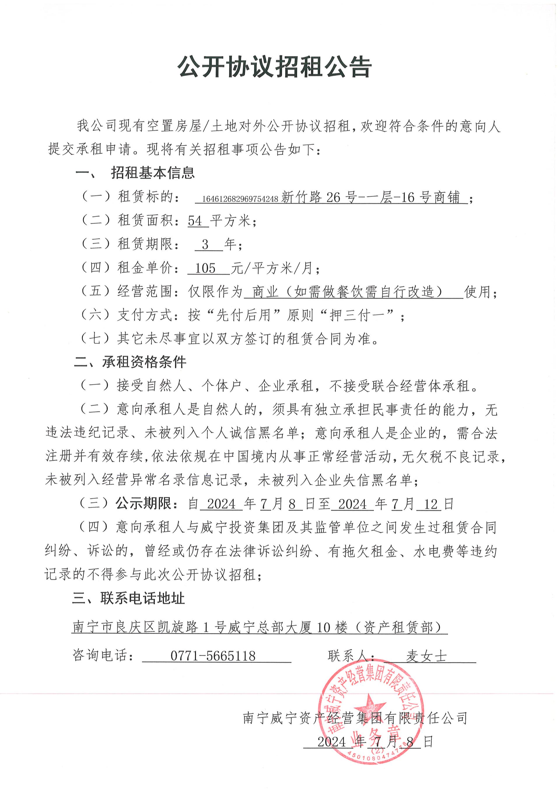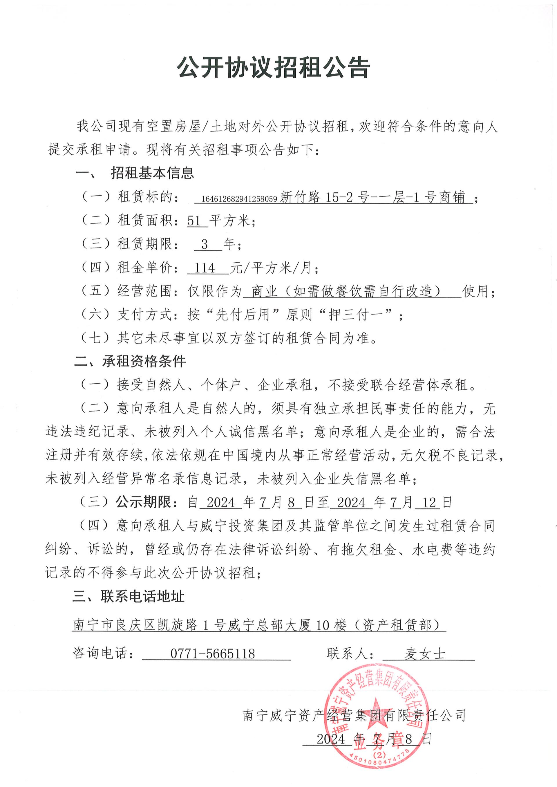 新竹路26號-12號、26-16號、15-2-1號商鋪公開協(xié)議招租公告