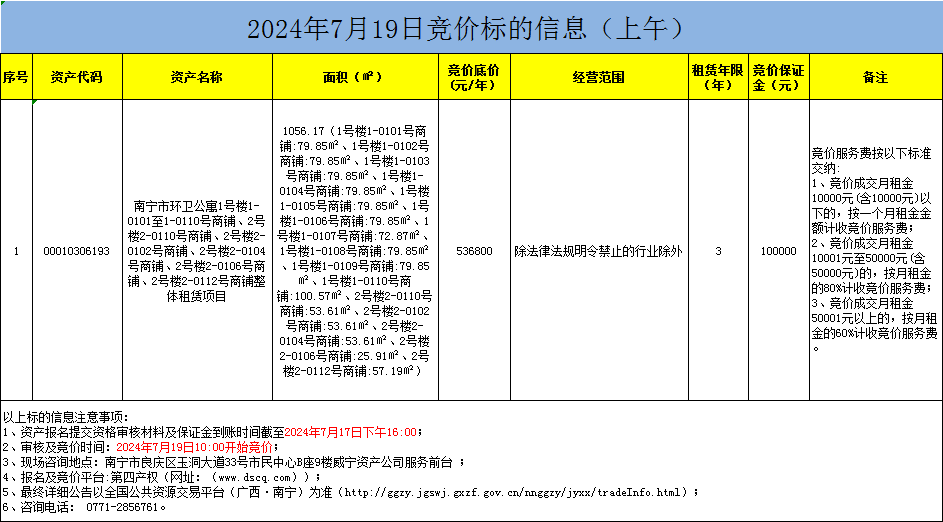 2024年7月19日競價標的信息(線上競價)