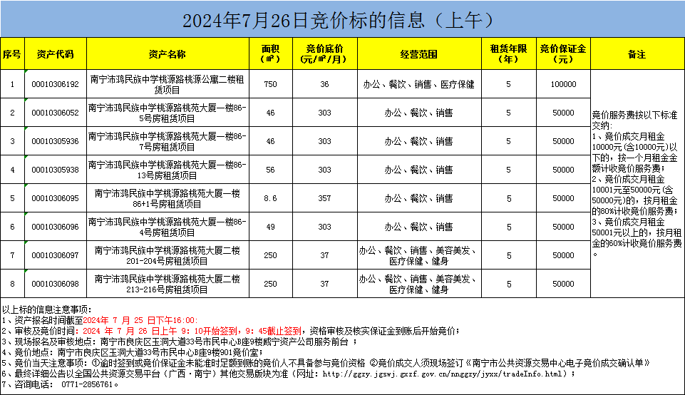2024年7月26日競價標的信息(現場競價)