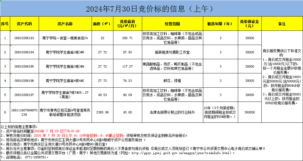 2024年7月30日競(jìng)價(jià)標(biāo)的信息(現(xiàn)場(chǎng)競(jìng)價(jià))