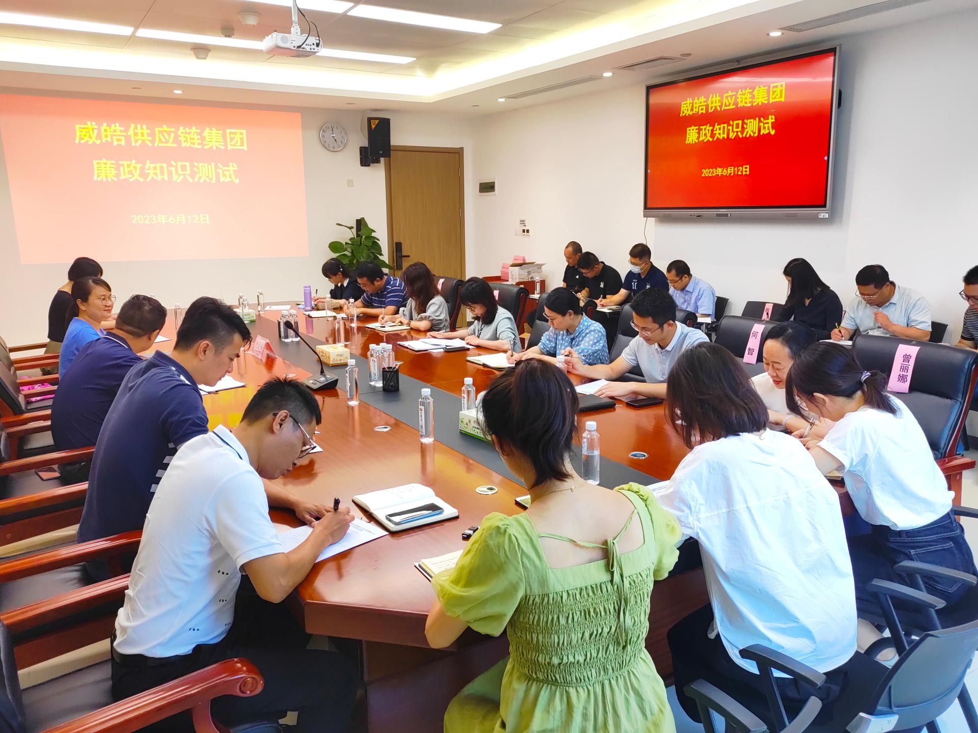 2023年6月12日,威皓供應鏈集團以“集體廉政談話+警示教育培訓+廉政法規知識測試”組合形式,為履新人員上好“第一課”,把好“起步關”,為公司運營筑起廉政防火墻,扎實推動清廉企業建設工作。威皓供應鏈集團黨委書記、董事長鄧露晶開展集體廉政談話,紀委書記何俊峰開展警示教育培訓。