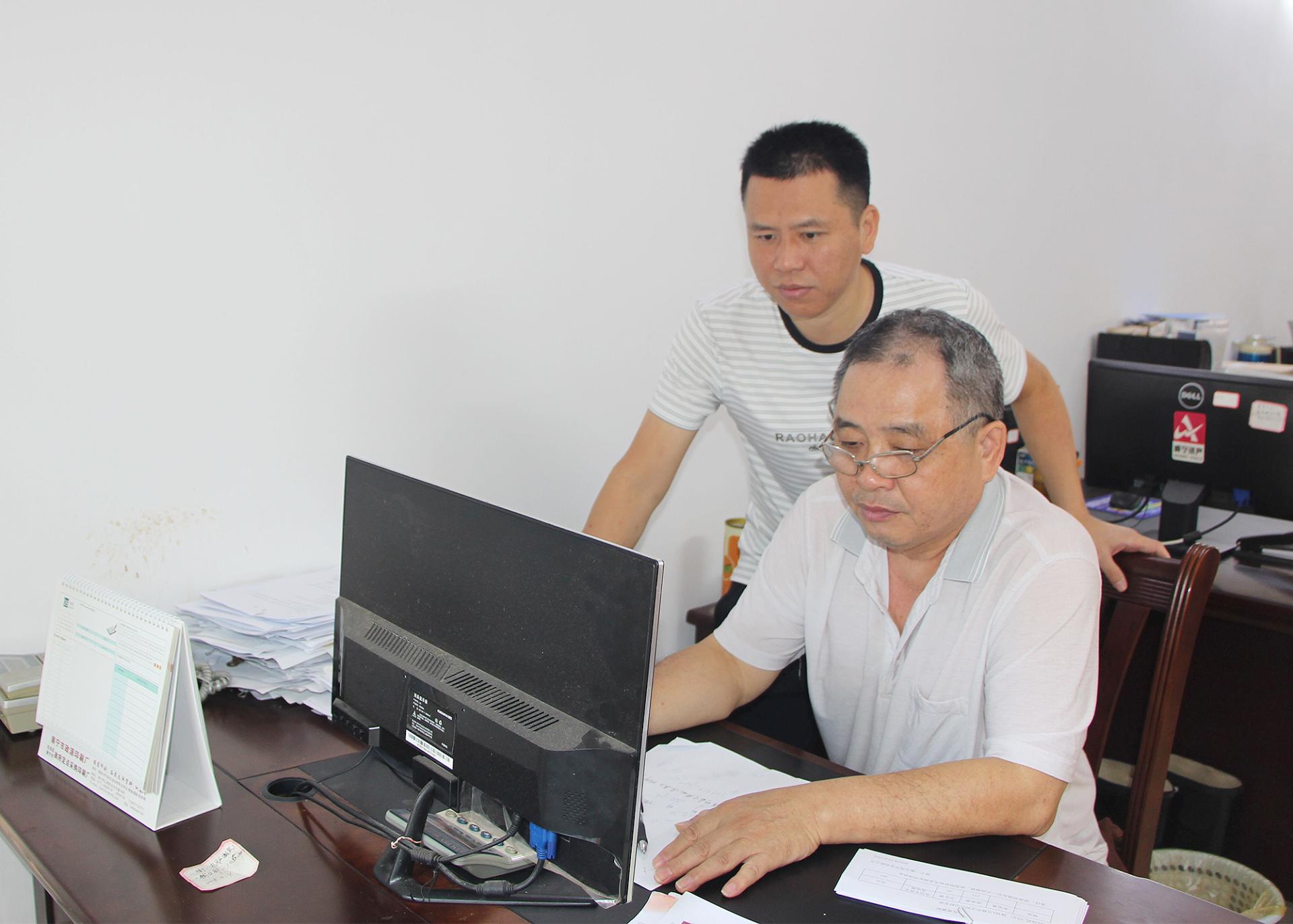 呂錫榮指導老員工使用金蝶系統