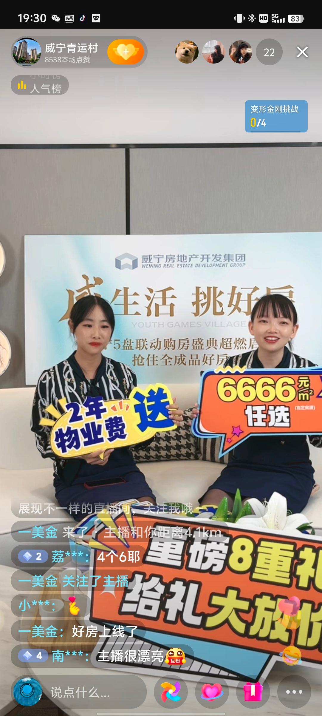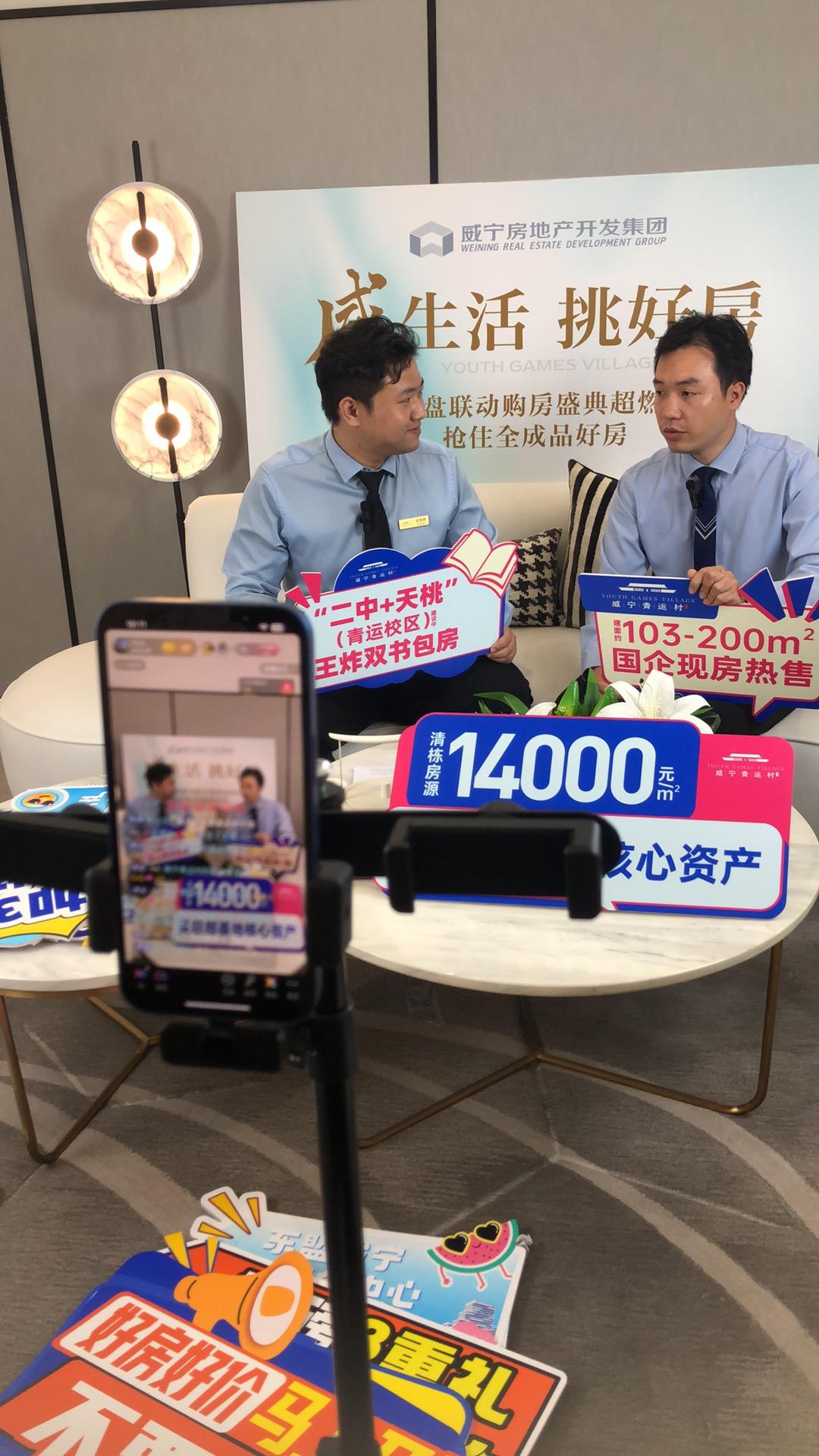 在威寧房地產開發集團的直播平臺上活躍著一群房產主播,他們像一位位“導游”,一一幫助受眾答疑解惑。今年以來,公司策劃營銷團隊緊抓國家和地方樓市政策機遇,以線上直播“云賣房”的形式開辟了新的營銷渠道,通過培育“王牌主播”,利用線上新媒體的高傳播、高擴散的優勢,宣傳公司在售項目,吸引更多潛在客群關注,有效轉化形成線下的銷售業績。