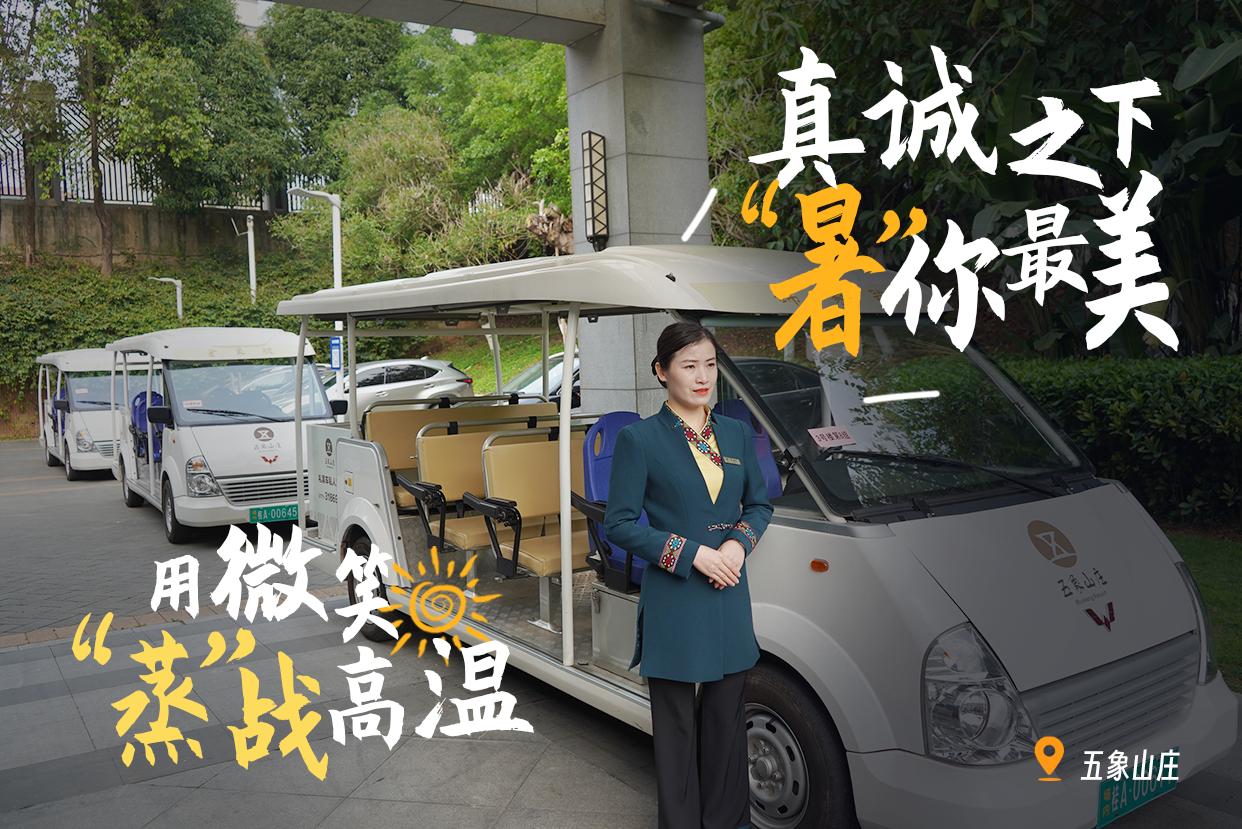 氣溫持續攀升,五象山莊禮賓人員仍保持最佳儀態,用飽滿的熱情對待每一位賓客。