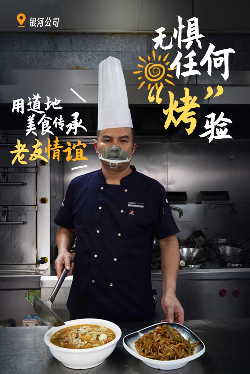 廚房灶臺附近溫度高達45攝氏度,銀河大酒店主廚在高溫下烹制“古城老友”炒粉。銀河大酒店“古城老友”系列菜品,已經成為銀河食客們口口相傳的明星菜品。