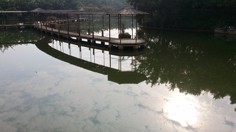 三九晨色霜冷兮,三九晨蘇迷離兮,三九晨曦朦朧兮,人漸醒,夜?jié)u央,一股凝霜凍九天,一盞陽燈亮云綿,一水清池鏡中照,一弧廊亭欲梳妝,一曲靜謐繞亭梁……三九時(shí)節(jié)的晨,在這里不見天寒地凍的冷,也沒有萬里冰封的雪,只有特屬于這里的“寒”,帶點(diǎn)瑟瑟入骨的冷,帶點(diǎn)微微入心的涼,甚是帶點(diǎn)爽爽提神的清新,而沉醉于寒夢中的大自然似乎仍未蘇醒,難道是在等著晨暉的鬧鈴或是曙光的報(bào)曉,還是在等著有人把它們喚醒呢?其實(shí)都不然
