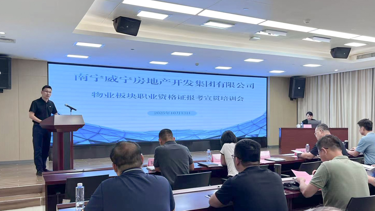 會議現場近日,南寧威寧集團所屬威寧房地產開發集團物業板塊職業資格證報考宣貫培訓正式啟動,標志著公司“項目建設+物業服務”雙輪驅動戰略下人才體系建設進入新階段。本次培訓旨在為員工梳理職業發展路徑,搭建專業成長平臺,為物業板塊高質量發展注入新動能。精準解讀——闡明證書價值與報考路徑本次宣貫培訓聚焦員工最關切的職業發展問題,系統解析了物業行業關鍵崗位的證書要求。培訓講師從政策層面入手,詳細解讀了《安全...