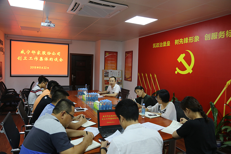 2018年8月10日,南寧威寧集團召開創衛復審迎檢工作推進會。會議傳達了8月10日上午召開的首府南寧創建國家衛生城市工作推進會會議精神,并就下一步創衛復審工作進行部署。