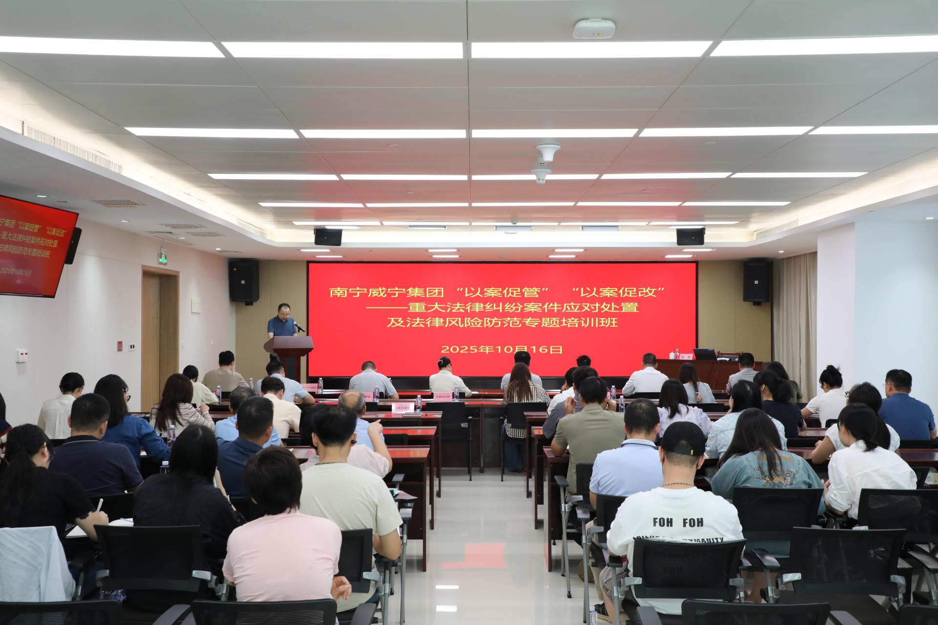 ?活動現場為深入貫徹落實全面依法治企要求,切實提升集團及各下屬企業應對重大法律糾紛案件及法律風險的能力,深刻剖析典型案例,總結經驗教訓,推動管理提升與制度完善,實現“辦理一案、警示一片、規范一方”的治理效果,2025年10月16日下午,南寧威寧集團在威寧總部大廈501會議室舉辦“以案促管”“以案促改”——重大法律糾紛案件應對處置及法律風險防范專題培訓班。集團副總經理黃志煒出席培訓活動。培訓邀請北京大成(南...