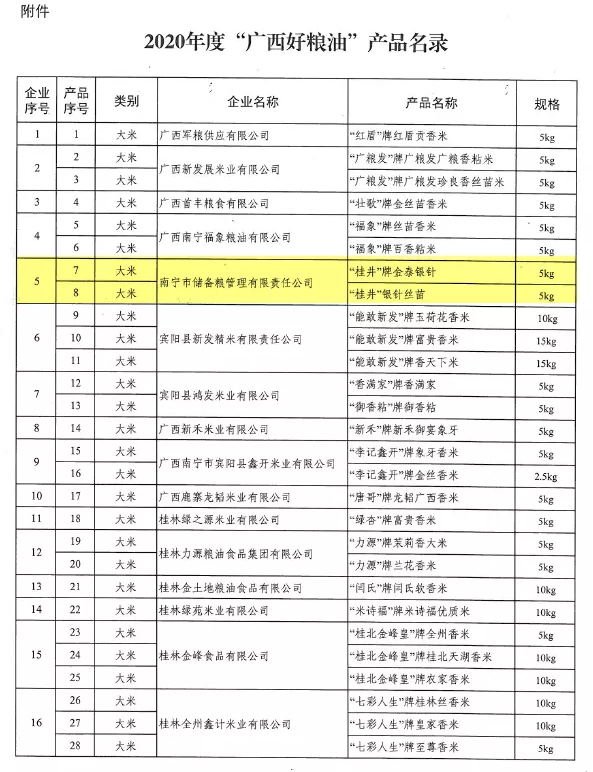 近日,2020年度“廣西好糧油”產品名錄正式公布,集團下屬的威寧市場公司監管單位儲備糧公司旗下“桂井”牌金泰銀針和銀針絲苗2個大米產品榜上有名。