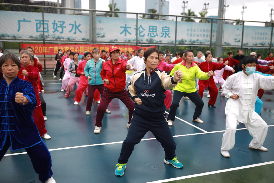 全民健身 健康你我 “2020年廣西體育中心網球館公益性體育健身技能培訓——八段錦”活動在網球館訓練場舉辦