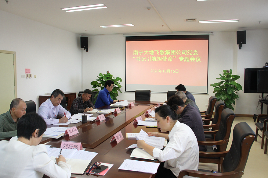 10月16日,南寧大地飛歌集團黨委召開“書記引航擔使命”專題會議。大地飛歌集團黨委領導班子成員參加會議,集團黨委書記、董事長劉巧瑛主持會議并講話。
