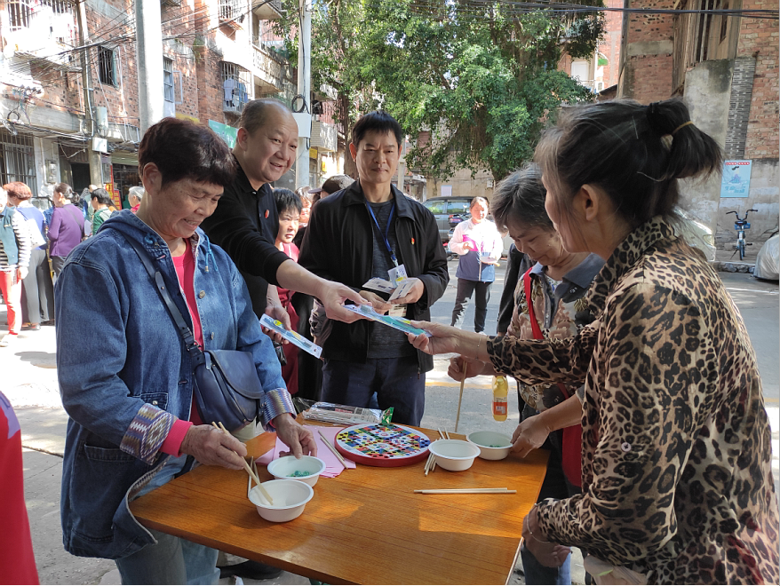 活動現場秋風送爽,情暖重陽。2020年10月23日,威寧市場公司商業事業部黨總支聯合永寧社區黨總支開展“孝老愛親,溫情重陽”主題活動,為社區退休老同志送上最真摯的節日祝福。活動現場,來自威寧市場公司和永寧社區的黨員志愿者們為社區退休老同志們精心準備了趣味橫生的游園活動。拋圈、接乒乓球、夾玻珠……老少咸宜的小游戲輪番進行,現場掌聲、喝彩聲此起彼伏。同時,在游園小游戲中穿插的全國文明城市創建、垃圾分類
