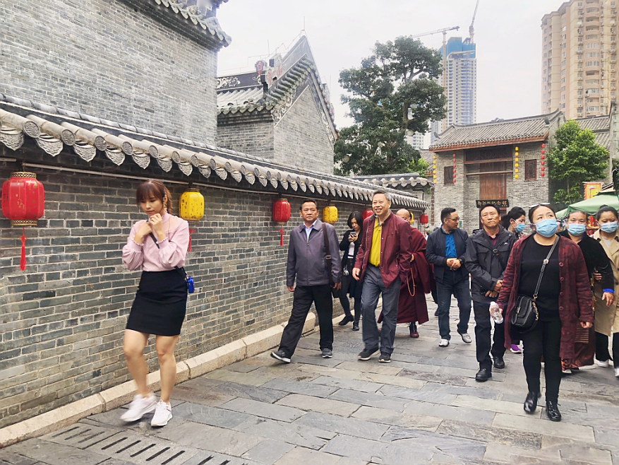 邊巴(左三)一行在三街兩巷內(nèi)走訪參觀近日,西藏自治區(qū)日喀則政協(xié)黨組成員、副主席邊巴一行17人來到“老南寧·三街兩巷”歷史文化街區(qū),就南寧市生態(tài)環(huán)境保護(hù)和文化旅游發(fā)展方面的工作經(jīng)驗(yàn)開展調(diào)研活動(dòng)。邊巴一行參觀了中華大戲院、銀獅巷、鄧穎超紀(jì)念館、南寧城隍廟、金獅巷民居群、漓江書院、南寧市甌駱漢風(fēng)陶瓷博物館、倉(cāng)西門巷等景觀景點(diǎn)和文化場(chǎng)館。調(diào)研組對(duì)民國(guó)風(fēng)情街等重點(diǎn)片區(qū)和街區(qū)景觀品質(zhì)給予了肯定,并表示街區(qū)內(nèi)的