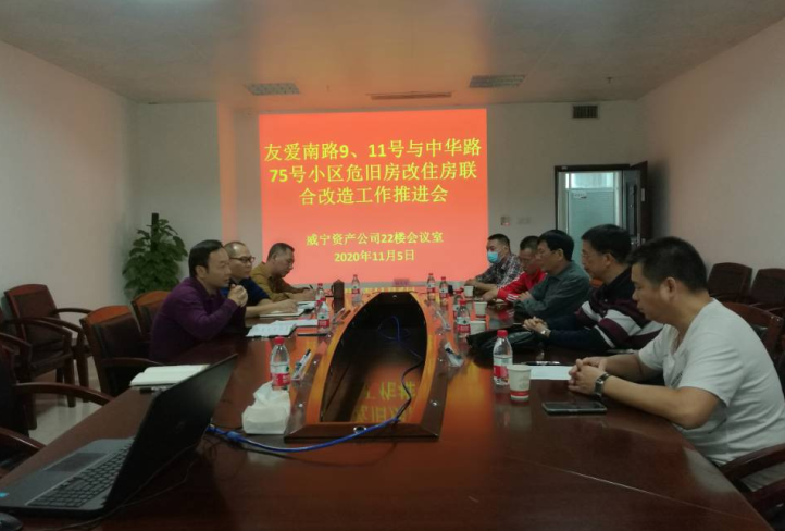 2020年11月5日下午,威寧資產(chǎn)公司召開加快推進(jìn)友愛南路9、11號(hào)與中華路75號(hào)危舊房改住房聯(lián)合改造的座談會(huì),主動(dòng)邀請(qǐng)參與項(xiàng)目建設(shè)的南寧市婦幼保健院、廣西南寧百益源食品有限責(zé)任公司、廣西居域房地產(chǎn)開發(fā)有限責(zé)任公司(項(xiàng)目代建單位)等相關(guān)單位進(jìn)行交流。