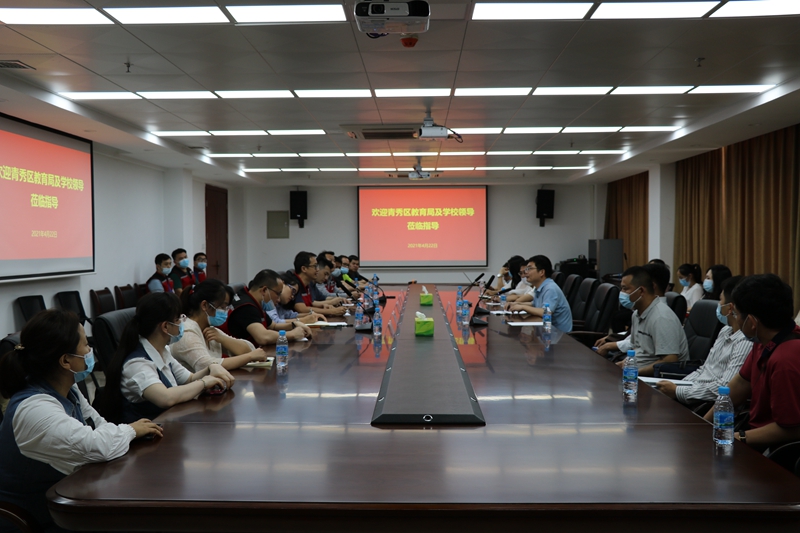 圖 座談會現場圖 學校代表聽取介紹為持續打造“全產業鏈運營、全過程檢測溯源、多角度立體化監督、陽光規范化操作”的食材集采集配體系,2021年4月23至24日下午,威耀供應鏈公司邀請青秀區45所公辦學校教師代表約100人,分兩批參觀五象配送基地,并開展座談交流。參觀過程中,威耀供應鏈公司向青秀區教育局及學校代表介紹了項目運營意義、食材驗收標準、食材檢測流程及公司運行實際等情況,并演示了日常作業流程及