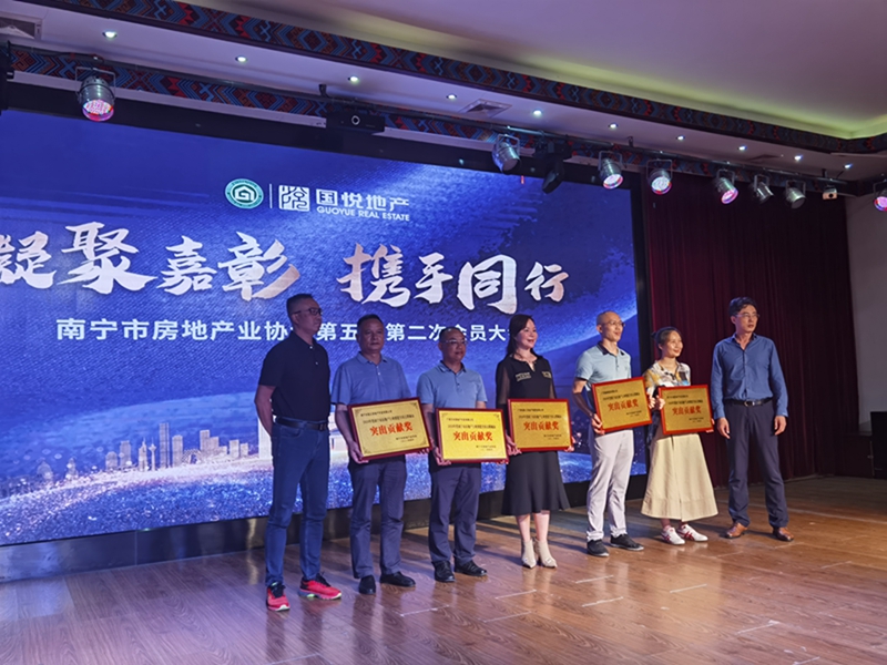 圖 國立公司副總經理馬超杰(左二)上臺領獎圖國立公司榮獲“南寧市房地產行業創建全國文明城市突出貢獻獎”圖國立公司榮獲“南寧市房地產行業抗擊新冠肺炎疫情優秀獎”2021年4月22日,南寧市房地產業協會召開第五屆第二次會員大會,全市100多家房地產企業齊聚一堂,頒發2020年度南寧市房地產行業“創城”“抗疫”獎項。威寧房地產公司所屬監管單位國立公司獲“南寧市房地產行業創建全國文明城市突出貢獻獎”“南寧