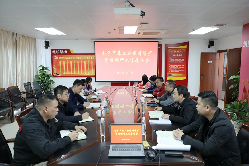 11月18日,南寧市總工會副主席陳國任一行5人到南寧威寧集團開展國有資產管理工作調研。集團紀委書記韋登香及相關部門負責人參加調研。