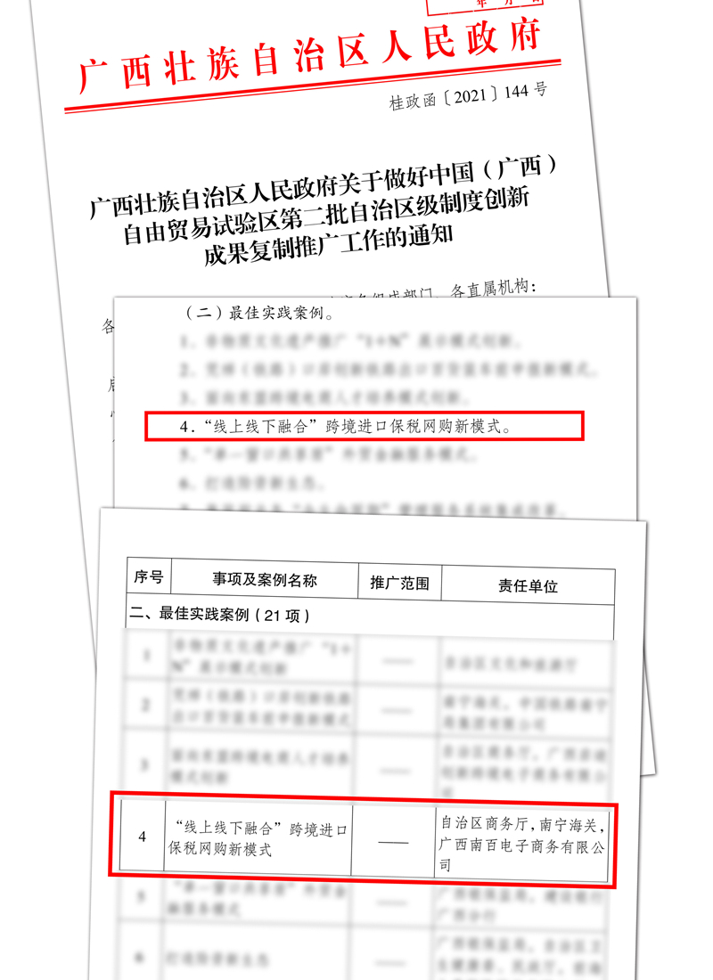近期,南百保稅倉項(xiàng)目在“廣西自貿(mào)區(qū)制度創(chuàng)新成果”中入選最佳案例,并獲在全區(qū)復(fù)制推廣。南寧百貨緊跟《中國(南寧)跨境電子商務(wù)綜合試驗(yàn)區(qū)發(fā)展規(guī)劃(2021-2025)》要求,持續(xù)推動(dòng)跨境電商線上線下業(yè)務(wù)發(fā)展,通過模式、人才、營銷等工作三管齊下,積極主動(dòng)探索業(yè)務(wù)新融合新動(dòng)能,做好南百保稅倉運(yùn)營。