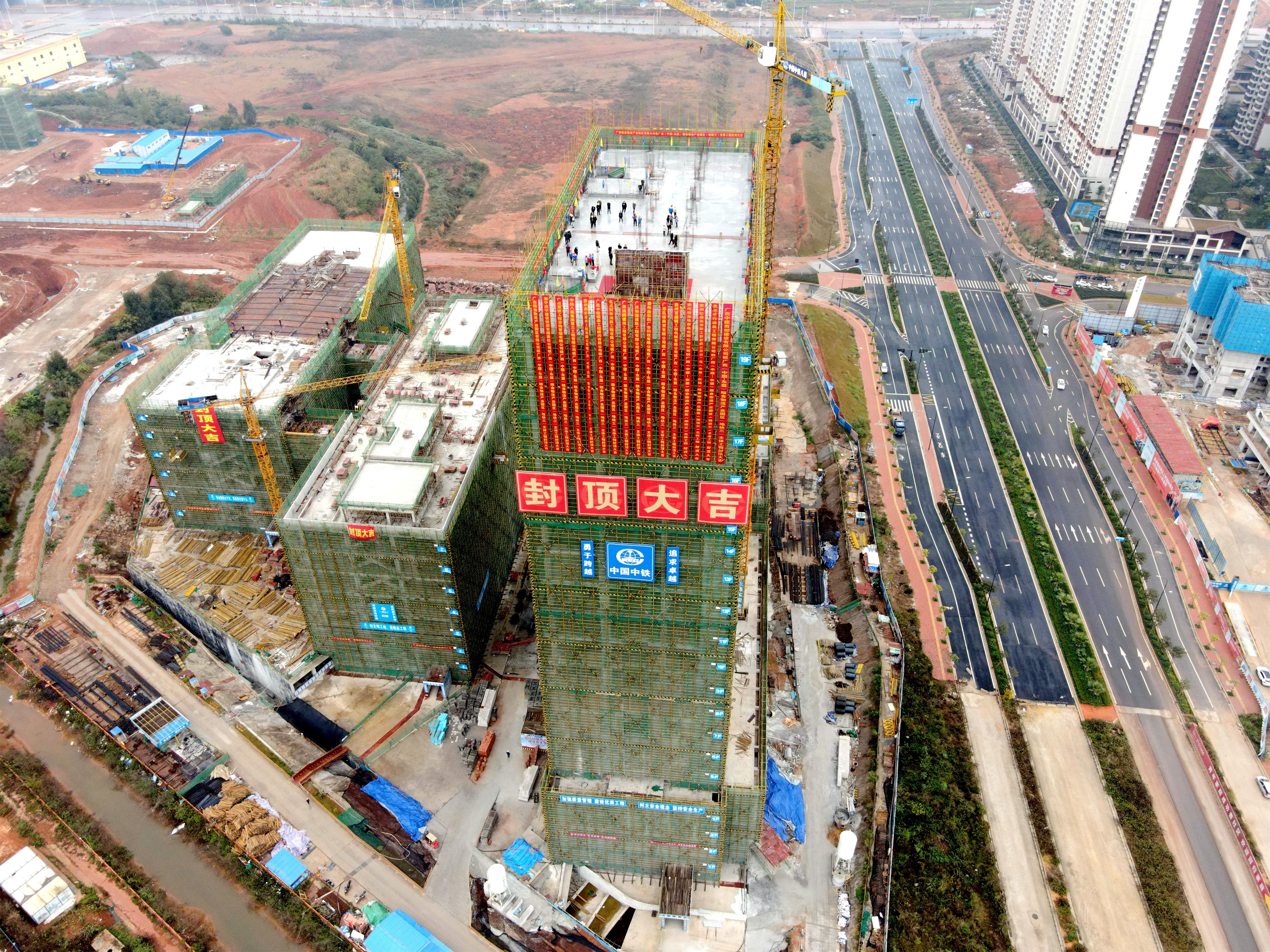 廣西(中國-東盟)糧食物流產(chǎn)業(yè)園區(qū)項(xiàng)目物流板塊商務(wù)中心主體結(jié)構(gòu)實(shí)現(xiàn)全面封頂