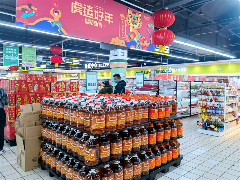 大型商超中的“桂井”糧油產(chǎn)品農(nóng)貿(mào)市場年貨商品豐富農(nóng)貿(mào)市場肉菜商品保供價穩(wěn)春節(jié)臨近,年味兒漸濃,農(nóng)副產(chǎn)品消費(fèi)市場一片紅火。威寧市場公司積極發(fā)揮國有農(nóng)產(chǎn)品銷售主渠道作用,全力做好春節(jié)期間市民生活必需品保供工作,守好市民的“菜籃子”“米袋子”。在新陽路水街市場,新年的喜慶感撲面而來,處處呈現(xiàn)供銷兩旺的喜人景象,臘肉、羊蹄、大閹雞……各攤位前人頭攢動,比往日更加熱鬧。運(yùn)送果菜的車輛進(jìn)出不斷,生猛海鮮和魚蝦