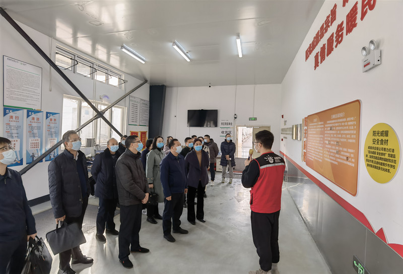 實(shí)地參觀基地生鮮庫現(xiàn)場調(diào)研信息化系統(tǒng)2022年1月11日下午,貴港市人民政府副秘書長覃華寧一行11人到威耀供應(yīng)鏈公司五象配送基地實(shí)地調(diào)研學(xué)校食材集采集配項(xiàng)目,南寧威寧投資集團(tuán)有限責(zé)任公司副總經(jīng)理滕振旗陪同調(diào)研。覃華寧一行實(shí)地參觀了五象配送基地的生鮮庫及冷鏈車場,對場地投資建設(shè),食材的檢驗(yàn)檢測、入庫、儲存、出庫、分揀、配送、信息化系統(tǒng)、車輛監(jiān)控等各個環(huán)節(jié)進(jìn)行全方位的了解,并對于威耀供應(yīng)鏈公司始終秉承