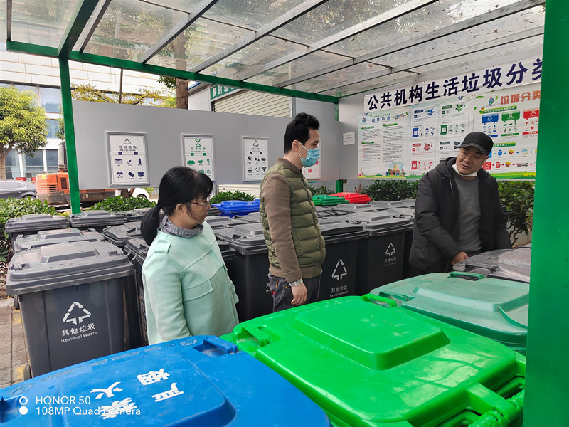 檢查現(xiàn)場2022年1月12日上午,公司副總經(jīng)理李可梅帶隊(duì)到南寧東盟產(chǎn)業(yè)研發(fā)大廈開展垃圾分類工作實(shí)地督導(dǎo)檢查。李可梅一行先后查看垃圾分類宣傳工作、垃圾桶配備、垃圾分類投放、收集、運(yùn)輸?shù)壤诸惞ぷ鏖_展情況,并對下一步開展垃圾分類工作提出具體要求。李可梅要求,在下一步工作中,要加大宣傳教育力度,全力推動垃圾分類工作扎實(shí)開展,通過有效的督促引導(dǎo),讓更多人行動起來,培養(yǎng)垃圾分類的好習(xí)慣;要堅(jiān)持黨建引領(lǐng),從