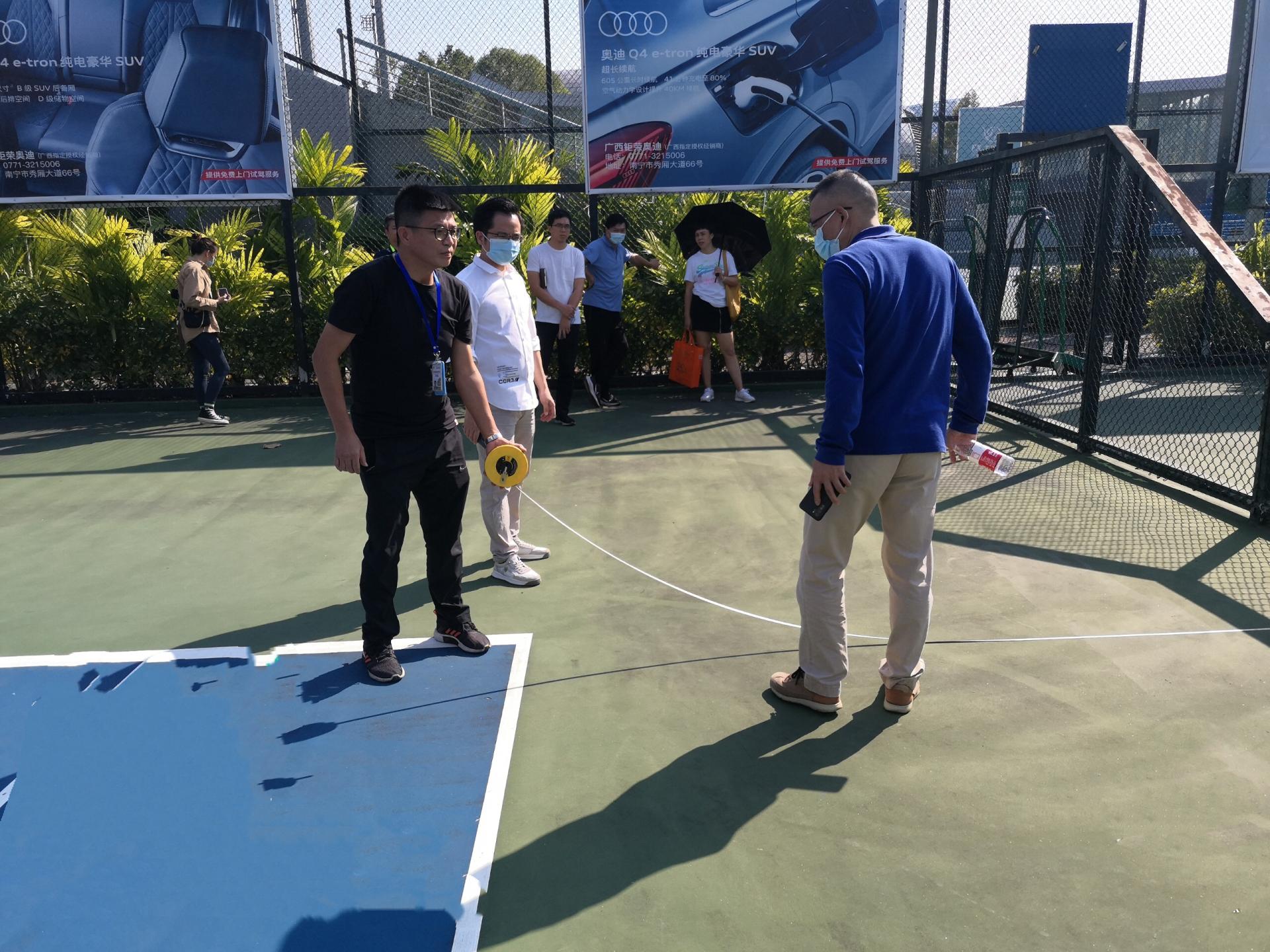 國家體育總局專家、自治區及南寧市執委會相關職能部門人員到廣西體育中心考察網球中心場地及設施設備情況