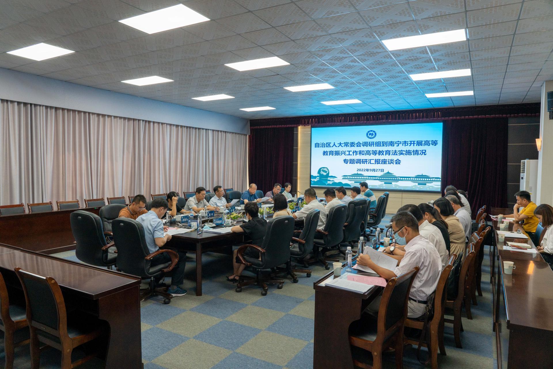 自治區人大常委會專題調研南寧市開展高等教育振興工作和高等教育法實施情況座談會在學校召開