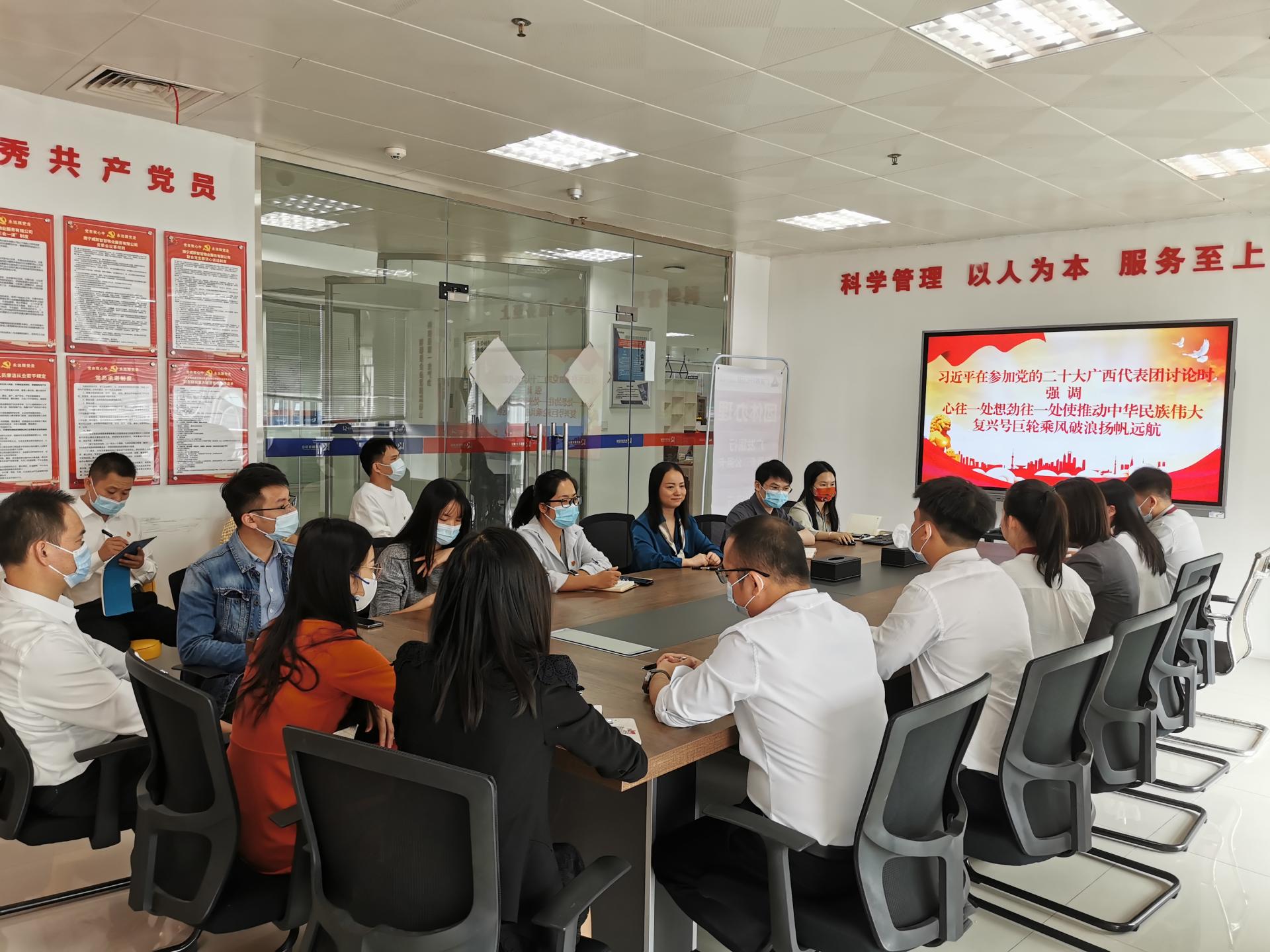 為強(qiáng)化黨建先鋒引領(lǐng),親商強(qiáng)企促發(fā)展,10月19日,威凱智慧物業(yè)公司聯(lián)合黨支部與廣發(fā)銀行信用卡中心南寧分中心黨支部在廣西新聞中心12樓黨建會(huì)議室開展支部共建交流活動(dòng)。活動(dòng)正值黨的二十大召開期間,大家共同認(rèn)真學(xué)習(xí)領(lǐng)會(huì)黨的二十大報(bào)告精神、習(xí)近平參加黨的二十大廣西代表團(tuán)討論時(shí)的重要講話精神,黨員們紛紛表示,要深入學(xué)習(xí)、深刻領(lǐng)會(huì)黨的二十大報(bào)告中提出的新思想、新判斷、新目標(biāo)、新舉措,把思想和行動(dòng)統(tǒng)一到黨...