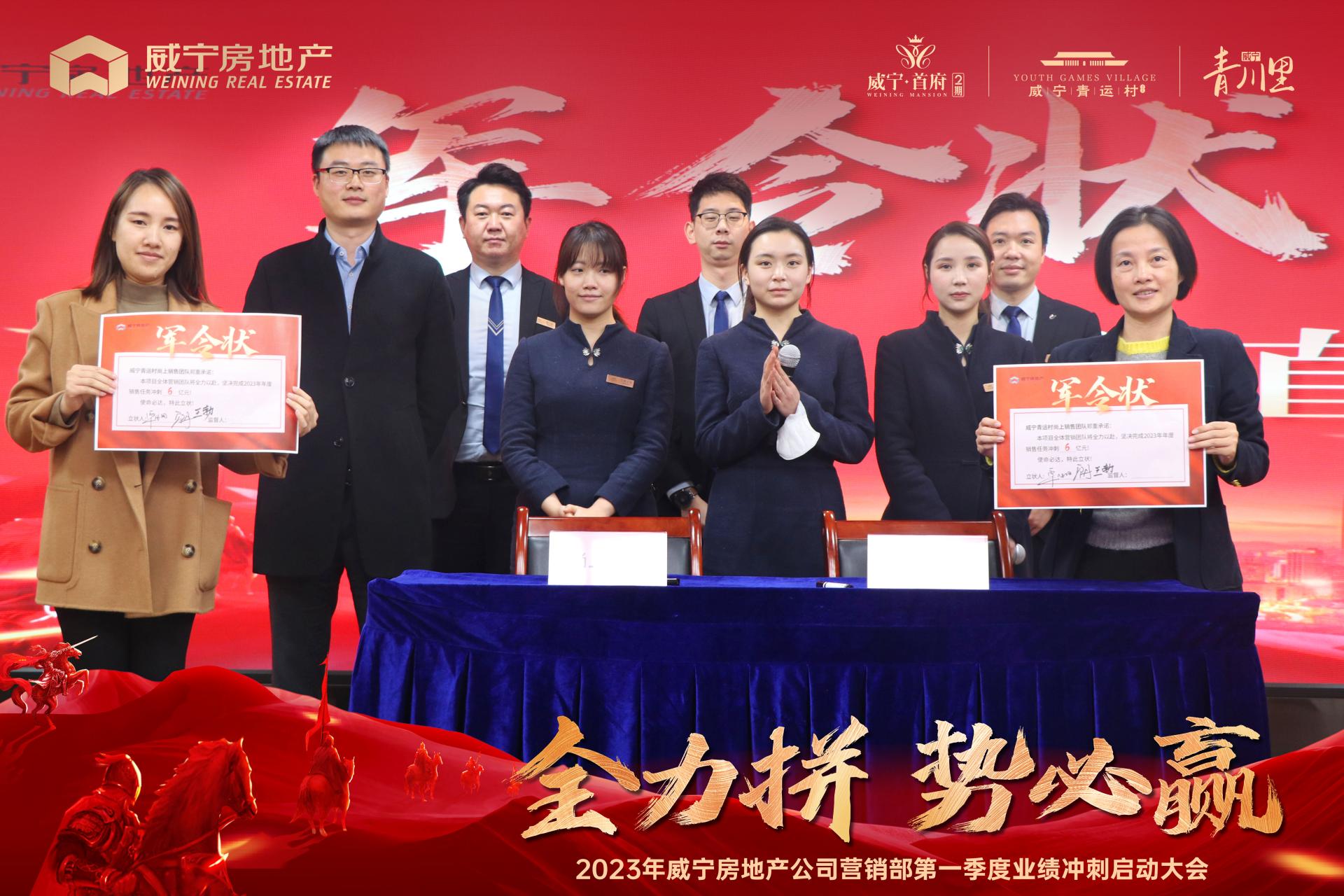 人勤春來早,奮進正當時,為提振開局之勢、全力沖刺業(yè)績目標,2月16日,威寧房地產(chǎn)公司召開第一季度“全力拼 勢必贏 ”業(yè)績沖刺大會,正式吹響攻堅2023年營銷目標的集結號。與會人員一起探討順應市場需求,積極尋求資源、推動創(chuàng)新營銷、樹立戰(zhàn)略信心的途徑,大家通過展示實際營銷案例,分享銷售經(jīng)驗和實戰(zhàn)技巧,共同研究如何通過有效工作,實現(xiàn)強拓客、保認購、抓簽約、快回款的方法。會上,宣讀了各大在售項目指標完成情況,回...
