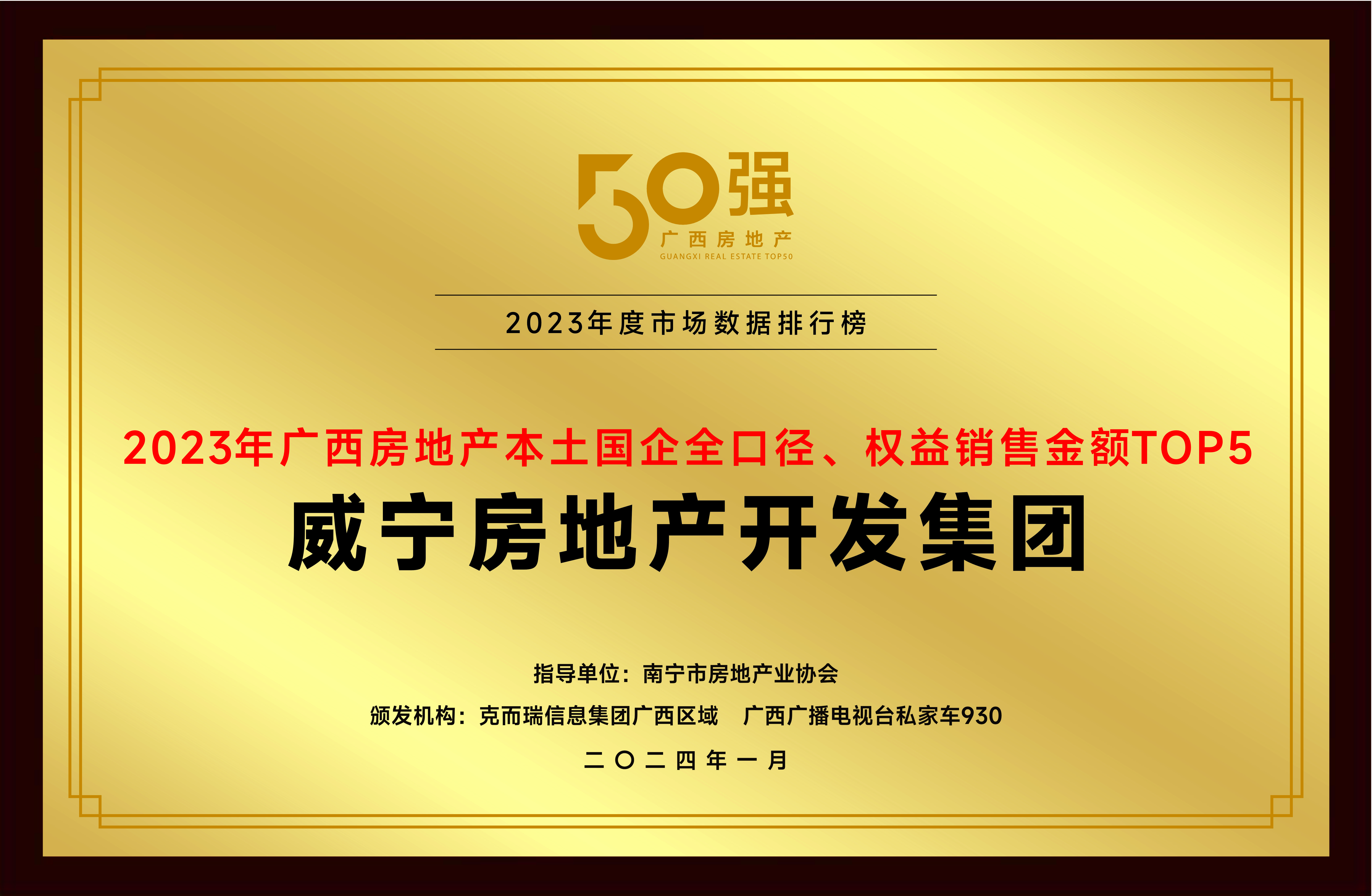 近日,2023廣西房地產行業(yè)盛典暨房地產及物業(yè)管理市場數(shù)據(jù)發(fā)布會在南寧舉辦。本次盛典行業(yè)“大咖”云集,公信力、引導力凸顯。威寧房地產開發(fā)集團憑借不俗業(yè)績,在眾多房開企業(yè)中脫穎而出,榮獲六項榮譽大獎。作為廣西本土國企,在過去一年,公司憑借自身項目布局和運營優(yōu)勢,產品力和交付力得到市場認可,為市場和購房者注入信心和活力。公司以穩(wěn)健的實力,榮獲本次盛典行業(yè)“2023年廣西房地產本土國企全口徑、權益...