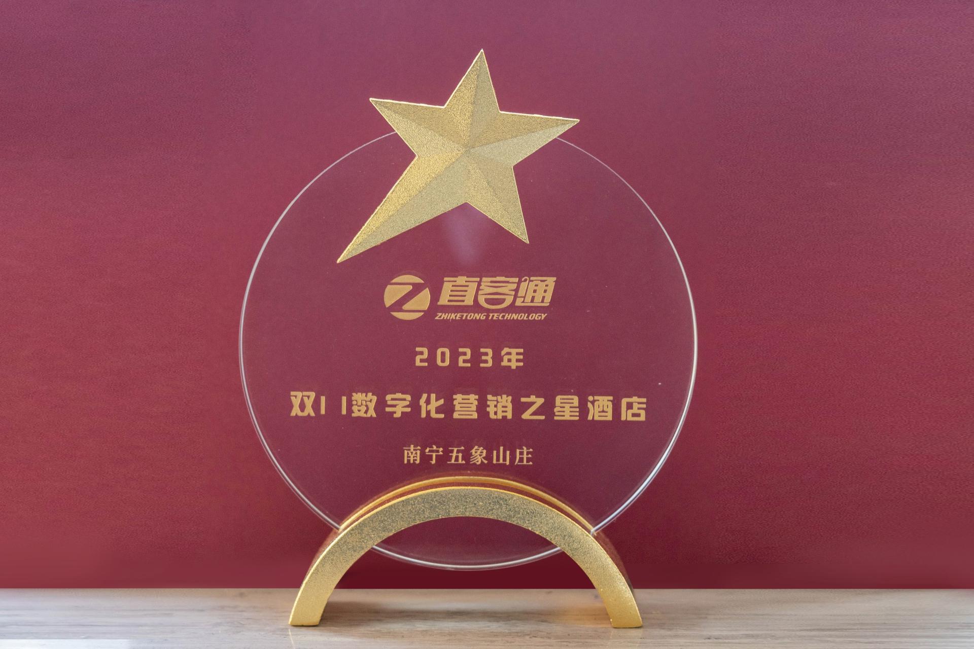 南寧五象山莊榮獲2023年直客通“雙11數(shù)字化營銷之星酒店”獎項