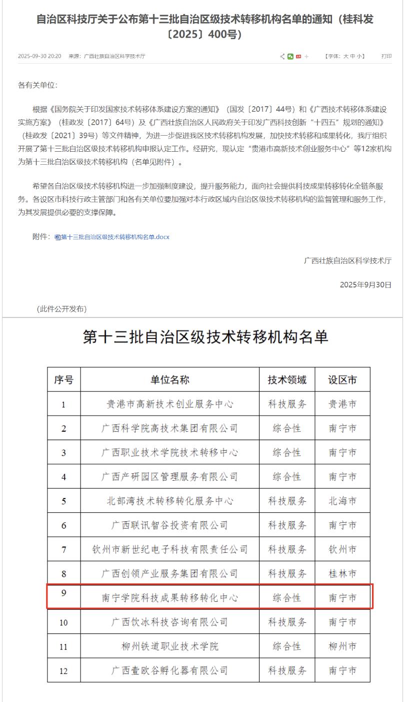 南寧學(xué)院獲批自治區(qū)級技術(shù)轉(zhuǎn)移機(jī)構(gòu)